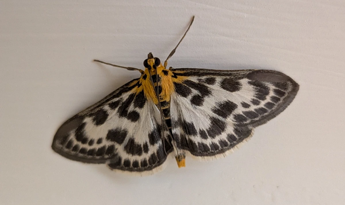 6 May 2025 @ 18:08 Beautiful moth I just found on the wall. Never seen one this colour before. Reply by email ⬅ The one before 📝 2025-05-05 10:24 Up next ➡ 📝 2025-05-07 07:04