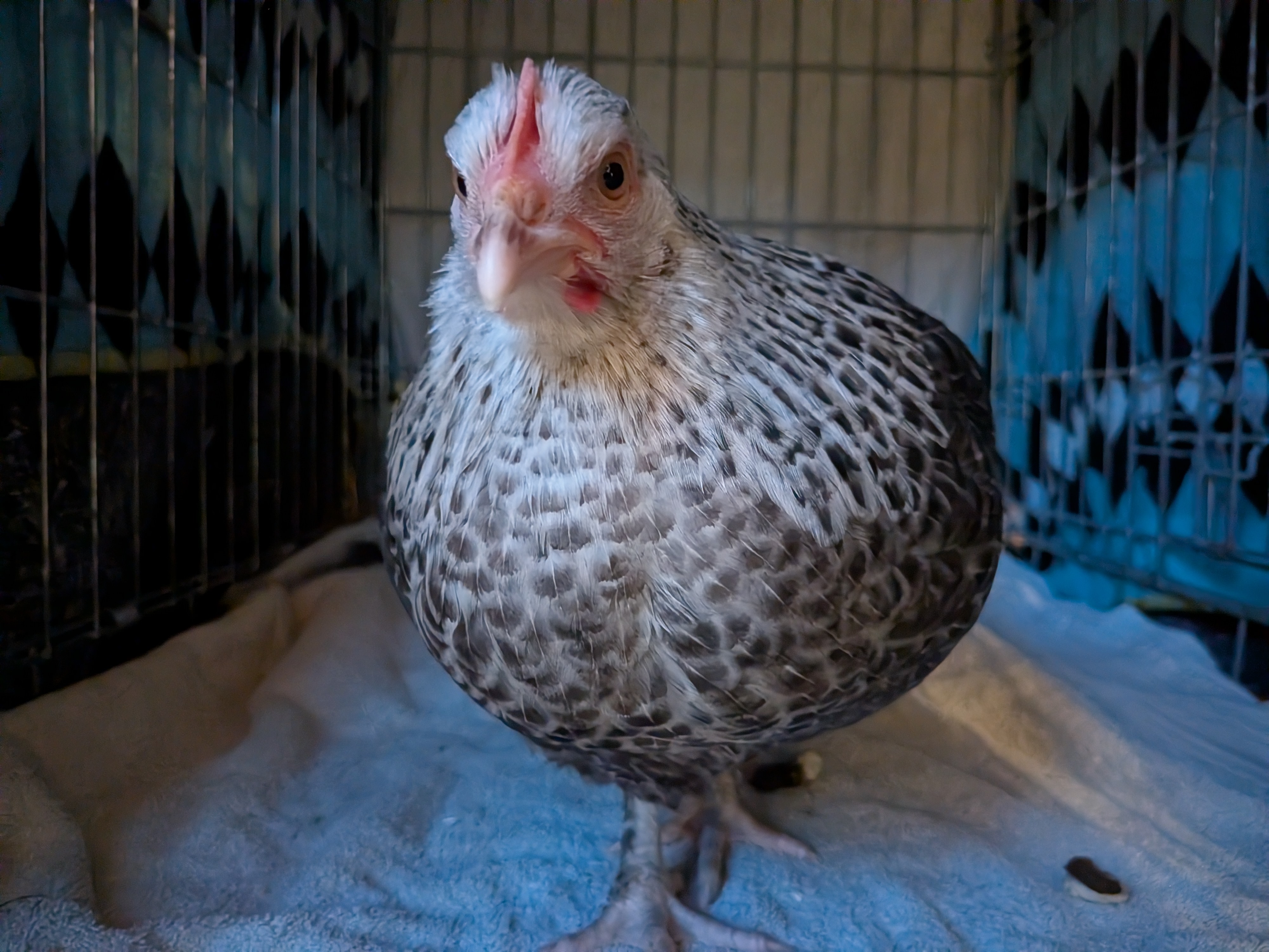 We've been keeping one of our young hens in a dog crate in the conservatory for the last couple of days.